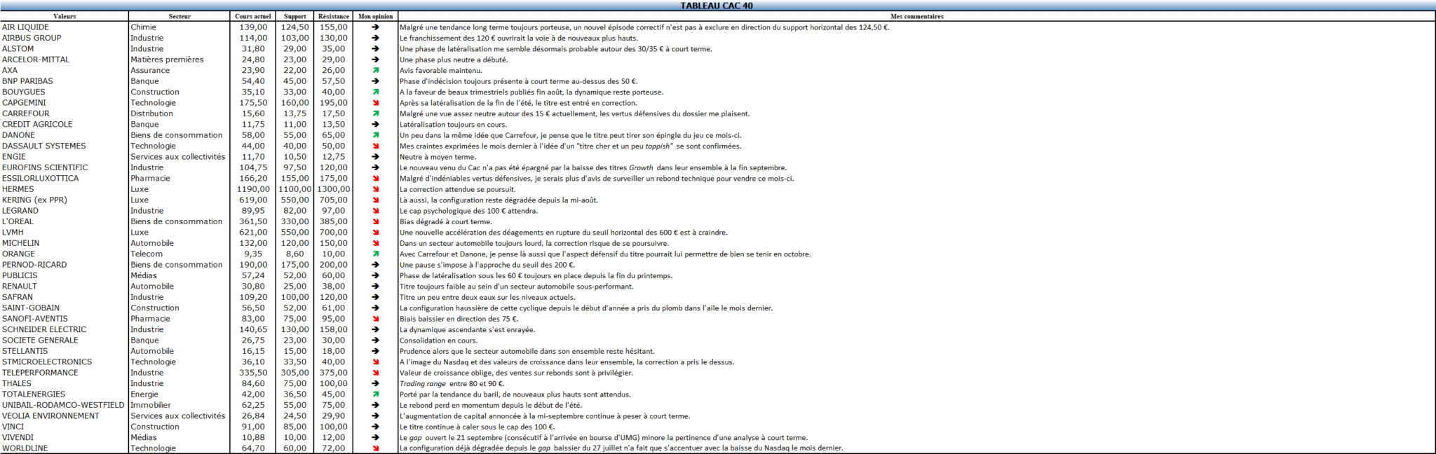 Retrouvez comme chaque mois mon tableau des valeurs du CAC 40. J’identifie à chaque fois un support et une résistance et vous fais part, en une phrase, de mon opinion. Cliquez sur l'image pour…